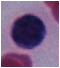 microscopía óptica. Tienen un núcleo muy denso, redondeado y azulado, que ocupa casi todo el citoplasma.