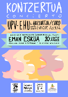 El viernes, 24 de enero, a las 20:00, en el Conservatorio de Música Juan Crisóstomo de Arriaga (Plaza Ibarrekolanda, 1. Bilbao), el Coro de la UPV/EHU ofrecerá un concierto a favor de la asociación vizcaína de Fibromialgia y Síndrome de Fatiga Crónica, Eman Eskua.
