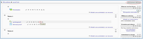 Paso4: Ocultar el recurso “Archivo” para que no lo vean los estudiantes y sólo vean el recurso “Página”.