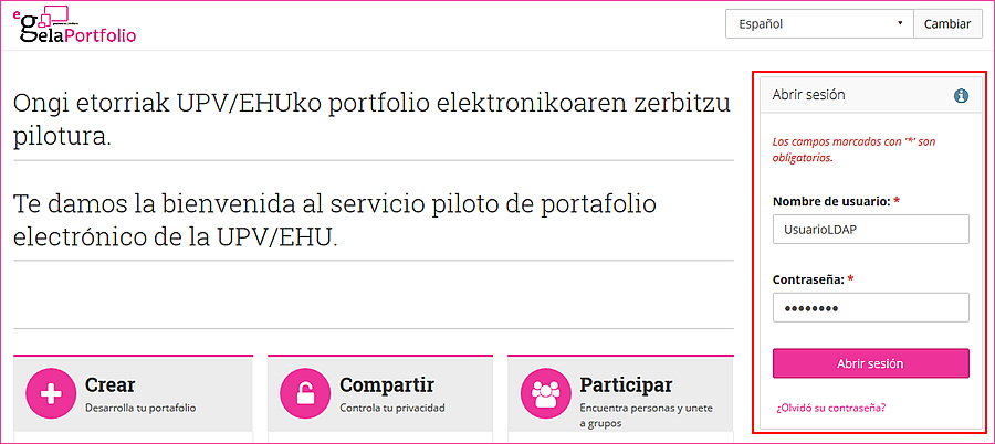 Para identificarte en la aplicación introduce tus credenciales LDAP en el formulario de login.