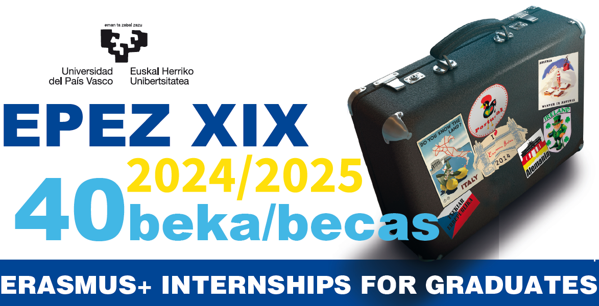 La presente Resolución tiene como objeto la publicación de las bases y la convocatoria de la edición 2024/2025 del programa EPEZ XIX, dirigido al alumnado que obtenga el título en la UPV/EHU durante el año académico 2023/2024 para realizar, en el marco del programa Erasmus+, prácticas en empresas radicadas en territorio de la Unión Europea con el fin de mejorar sus competencias profesionales, facilitar su empleabilidad y, en definitiva, completar su formación en un entorno cultural diferente.