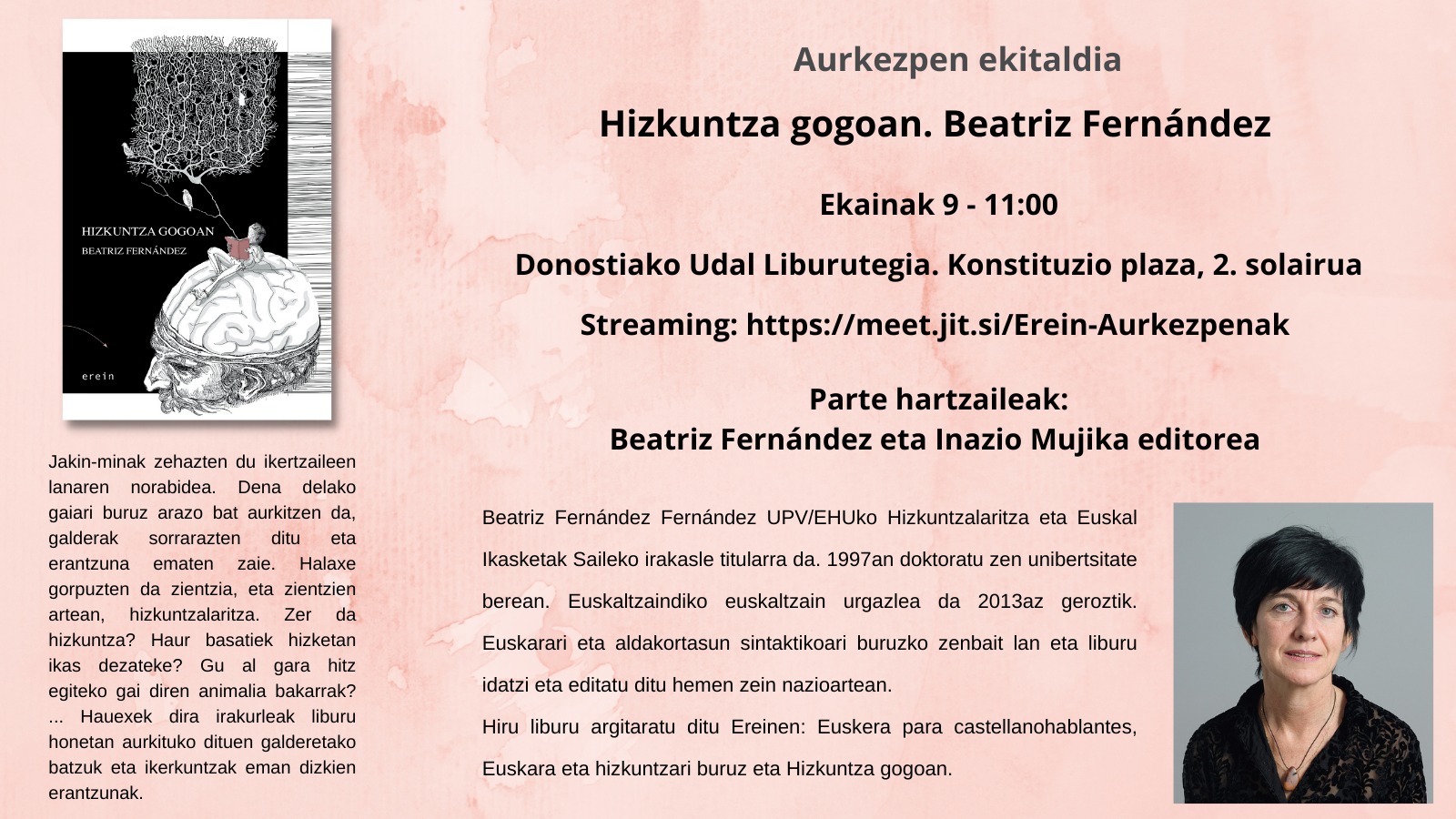 November 9, 2017, Donostia – 12:00H Udal Liburutegiko Mandasko Dukearen Aretoa (Konstituzio Plaza) AURKEZPEN EKITALDIA Beatriz Fernández |