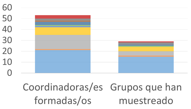 Cantidad de coordinadoras/es formadas/os, grupos muestreando y características de los grupos participantes: