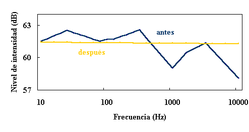 ajuste de su respuesta en frecuencia para acoplarse a la de la sala en la