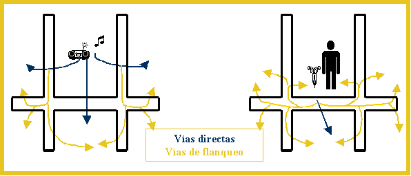 particiones comunes, o de flanqueo, es decir, a través de elementos
