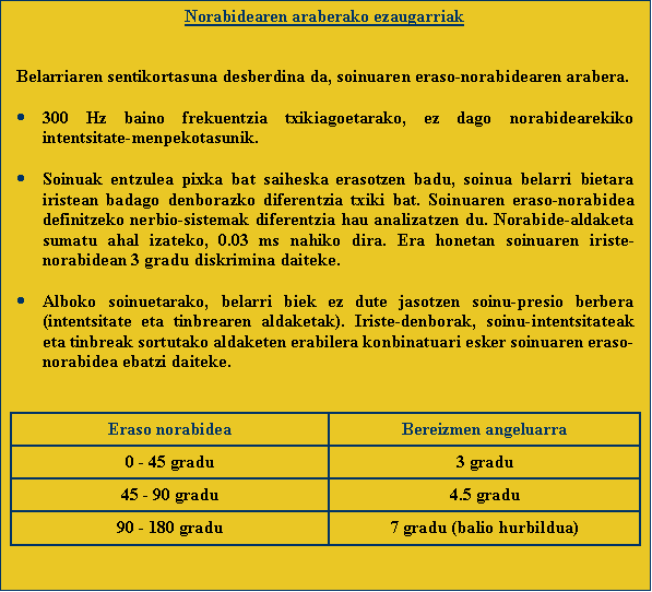 Belarriaren norabidearen araberako ezaugarriak