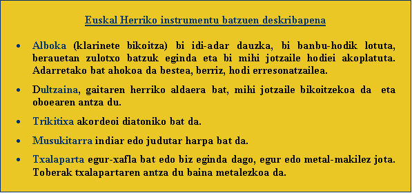 Euskal kulturak berezko musika-instrumentuak sortu eta garatu ditu.
