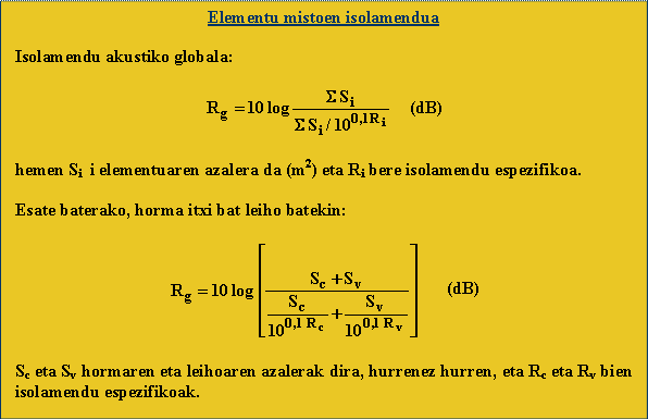 baten (ateak, leihoak, etab...) isolamendu akustiko globalean