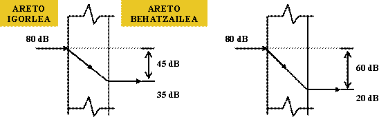 eraikuntzetan galera hauek 30 eta 70 dB bitartekoak dira. |
