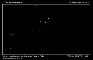 M29 se encuentra a una distancia de 7000 años-luz y posee una edad de sólo unos 10 millones de años, lo que permite