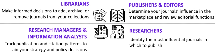 Los indicadores bibliométricos correspondientes al año 2017 para más de 11.500 revistas científicas se publicaron el 26 de junio de 2018, ya que hay que contabilizar todas las citas que aparecen en las revistas publicadas hasta el 31 de Diciembre de 2017. El JCR ofrece un amplio espectro de aplicaciones prácticas para los profesionales de la información.