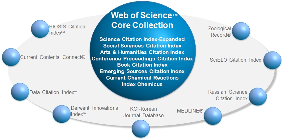 La denominada Web of Science (WOS) (anteriormente conocida como Web of Knowledge, WOK) es un servicio on-line que, previo pago, permite el acceso a los índices de citas científicas. La WOS permite acceder a numerosas bases de datos, entre las que se encuentran algunas de las fuentes más importantes de datos bibliográficos y bibliométricos (ver figura inferior) como, por ejemplo: