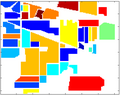 This scene was gathered by AVIRIS sensor over the Indian Pines test site in North-western Indiana and consists of 145\times145 pixels and 224 spectral reflectance bands in the wavelength range 0.4–2.5 10^(-6) meters. This scene is a subset of a larger one. The Indian Pines scene contains two-thirds agriculture, and one-third forest or other natural perennial vegetation. There are two major dual lane highways, a rail line, as well as some low density housing, other built structures, and smaller roads. Since the scene is taken in June some of the crops present, corn, soybeans, are in early stages of growth with less than 5% coverage. The ground truth available is designated into sixteen classes and is not all mutually exclusive. We have also reduced the number of bands to 200 by removing bands covering the region of water absorption: [104-108], [150-163], 220. Indian Pines data are available through Pursue's univeristy MultiSpec site.