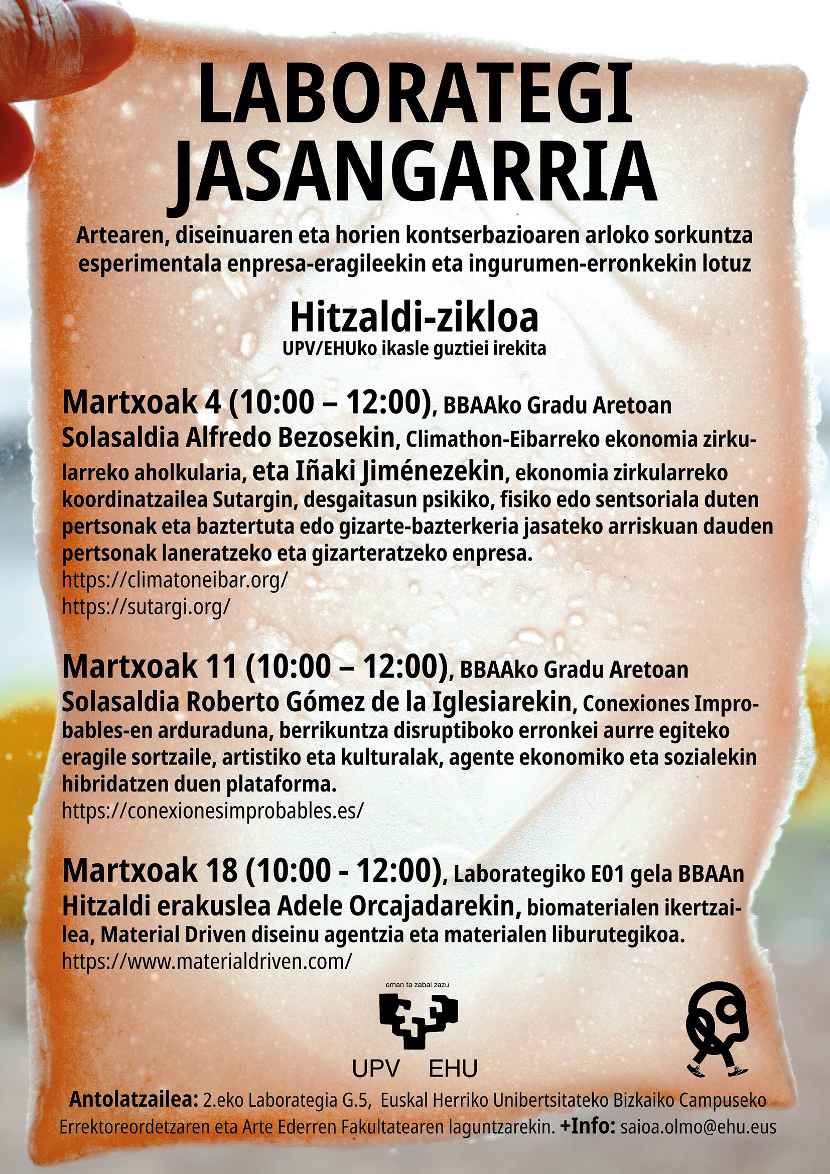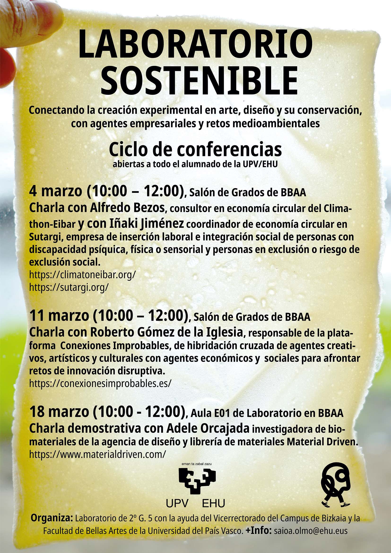 Ciclo de conferencias LABORATORIO SOSTENIBLE · LABORATEGI JASANGARRIA Hitzaldi-zikloa (Agiri Kulturala)