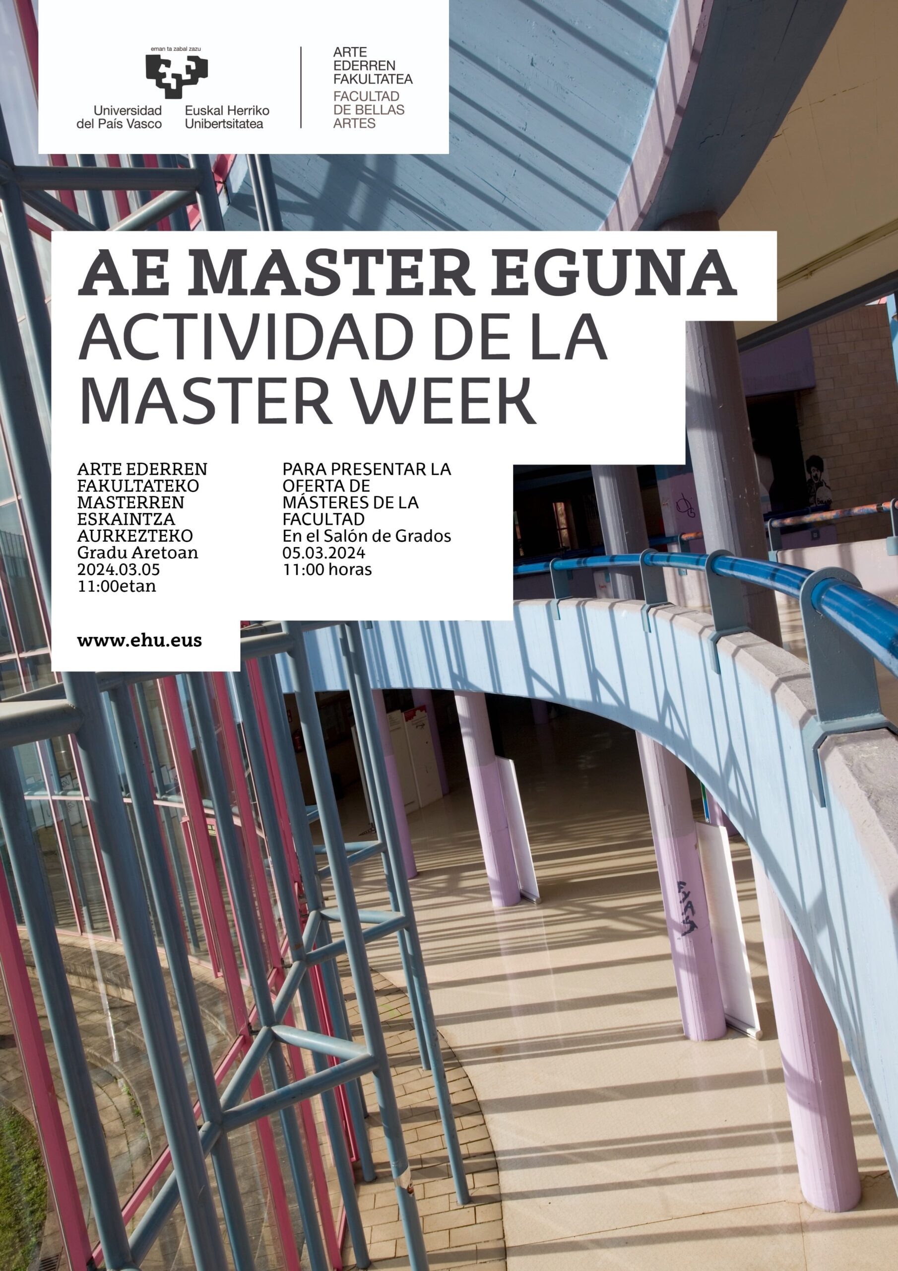 – Martxoaren 18tik 27ra, Arte Ederren Fakultateko erakusketa-aretoan, 10:00etatik 19:00etara. Inaugurazioa martxoaren 21ean 12:00etan izango da, ostegunean.