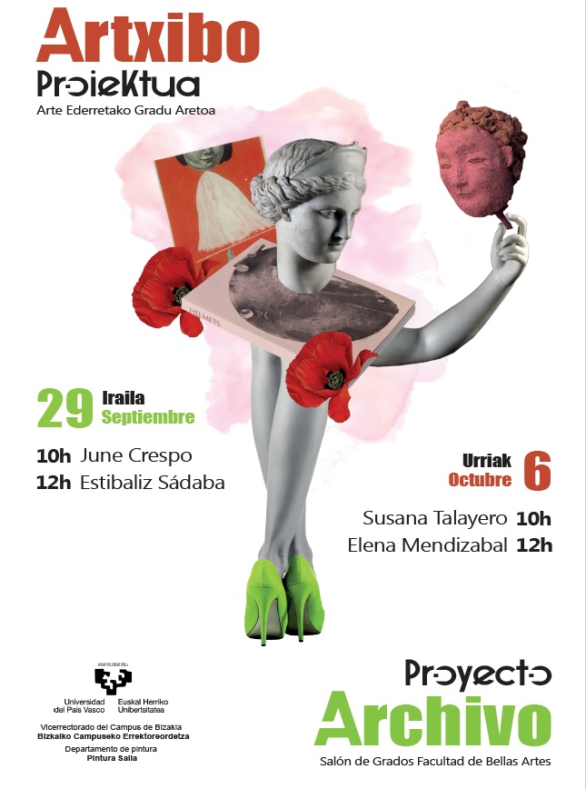 PROYECTO ARCHIVO 2022 :::::::::::::::::::::::::::::::::::::::::::::::::::::::::::::::::::::::::::::::::::::::::::::::::::::::::::: ARTXIBO PROIEKTUA 2022 Euskal emakume artista garaikideen hitzaldiak Arte Ederren Fakultatean. Ezagutza feministen nazioarteko artxibo-sarean sartuko dira. Aurten honako hauek ditugu: Sarrera librea Arte Ederren Fakultateko Gradu Aretoan 2022ko irailaren 29an eta urriaren 6an. ACTIVIDAD VÁLIDA PARA AGIRI KULTURALA, 8 horas teóricas