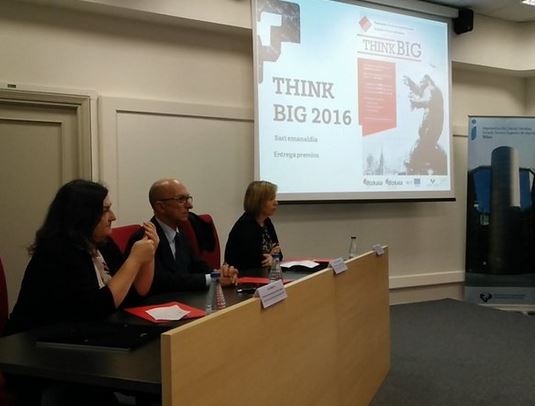 Think Big, el concurso de ideas empresariales que invita a pensar a lo grande a los estudiantes y las estudiantes del campus Bizkaia de UPV/EHU, ha entregado sus premios hoy , viernes 27 de mayo. La propuesta ganadora en esta edición fue Segurleku, el segundo premio fue para Uhinak y los dos terceros premios los ha recibido Horsegenetic y Mind The Drone.