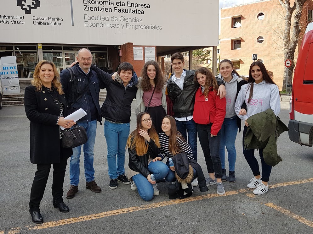 La Dra. María Saiz y el profesor Rubén Elortegi del Instituto Azkorri (Getxo), con su alumnado en UPV/EHU (Bilbao)