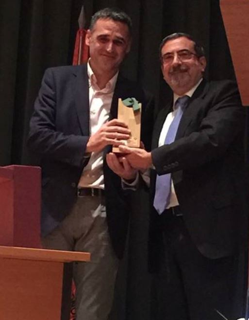 Arturo Rodriguez (derecha), presidente de FESIDE, nombra a Josu Ugarte (izquierda) ‘Amigo de la Fundación FESIDE’