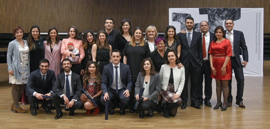 El Máster MBA Executive y el Máster en Marketing y Dirección Comercial, ambos de UPV/EHU clausuraron su 29 y 28 edición, respectivamente. El acto y entrega de diplomas de ambos másteres, organizados por el Instituto de Economía Aplicada a la Empresa de la Universidad del País Vasco / Euskal Herriko Unibertsitatea, tuvo lugar el dos de marzo de 2018 y estuvo presidido por la Vicerrectora de Grado y Postgrado, la Dra Araceli Garín, a quien acompañaban el Dr. Albizu, Director del Instituto de Economía, el Dr. Barrutia, Decano de la Facultad de Economía y Empresa y las doctoras Dª Pilar Zorrilla, Directora del Máster MBA Executive y Dª Soledad Aguirre, Directora del Máster de Marketing y Dirección Comercial.