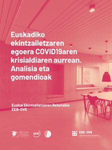 COVID-19aren krisian zehar enpleguari begira hartutako premiazko neurriak hauek izan dira nagusiki: langileen lanaldia murriztea (% 27,2), soldatak murriztea (% 15,7) eta plantilla murriztea (% 12,3). Ikusten da Euskadin enpleguarekiko kezka eta konpromiso handiagoa dagoela, Estatuan lortutako emaitzekin alderatuta. Ikusi: https://www.gem-spain.com/wp-content/uploads/2020/06/GEM-COVID19-English.pdf