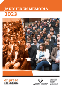 Memoria honen orrialdeetan, artikuluen, liburuen eta hitzaldien bidez egindako ikerketak sortutako ezagutza nola transferitzen den erakusten da, Enpresa Institutuaren premisa betez: ezagutzaren transferentzia.