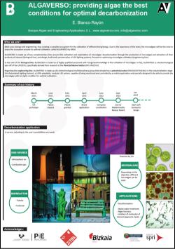 Aipamen berezia merezi du Esther Blanco Rayónek egindako posterrak, “ALGAVERSO: providing algae the best conditions for optimal decarbonisation” izenekoak. Poster onenaren saria lortu zuen ikastaroan parte hartu zuten pertsonen bozketa bidez. Estherrek, UPV/EHUko irakasle eta ikertzailea eta Algaversoko sortzaileetako bat, Algaverso UPV/EHUko spin-off bioteknologikoa dela argi eta garbi islatzen duen posterra aurkeztu zuen, Basque Algae and Engineering Applications S.L. (BAEA) enpresak garatua. Ideia, batez ere, bi ildo osagarritan oinarritzen da: patentatutako argiztapen-teknologia, eskala desberdinetako mikroalgen hazkuntza optimorako, eta deskarbonizazioa, mikroalgen ekoizpenetik abiatuta, batez ere Euskal Autonomia Erkidegokoa, eta produktu interesgarrien erauzketa.
