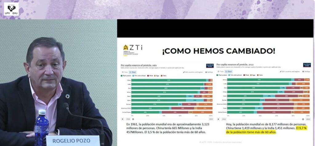 Rogelio Pozo, CEO de AZTI, puso sobre la mesa una idea tan evidente como poco debatida: la alimentación no es solo un asunto de salud o de placer, sino un vector estratégico global, comparable —o incluso superior— a la energía.