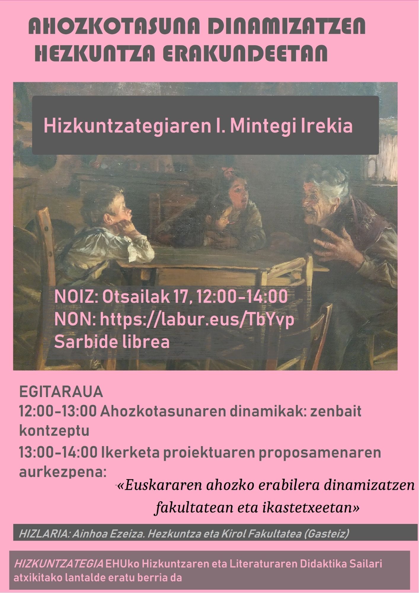 Mintegiaren izenburua: Ahozkotasuna dinamizatzen hezkuntza erakundeetan