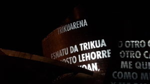 En el caso de la artista norteamericana Jenny Holzer (Gallipollis, 1950), el proceso comenzó hace muchos años y la lectura de poesía traducida al inglés en Six Basque Poets (2007) ha sido uno de los elementos de trabajo. En su exposición retrospectiva en el Guggenheim Bilbao a partir del 22 de Marzo de 2019, su instalación visual de aforismos incluye también al euskera, la lengua más antigua de Europa. Para ello, y por la importancia de las palabras y su expresión conceptual, Jenny Holzer ha requerido trabajar con cuidado la traducción del inglés al euskera y con varias interpretaciones posibles. Una de esas exquisitas interpretaciones paralelas ha sido a cargo de la artista y traductora Amaia Gabantxo (Bermeo, 1973), reconocida en 2018 por el premio a la Traducción Literaria Etxepare-Laboral Kutxa.
