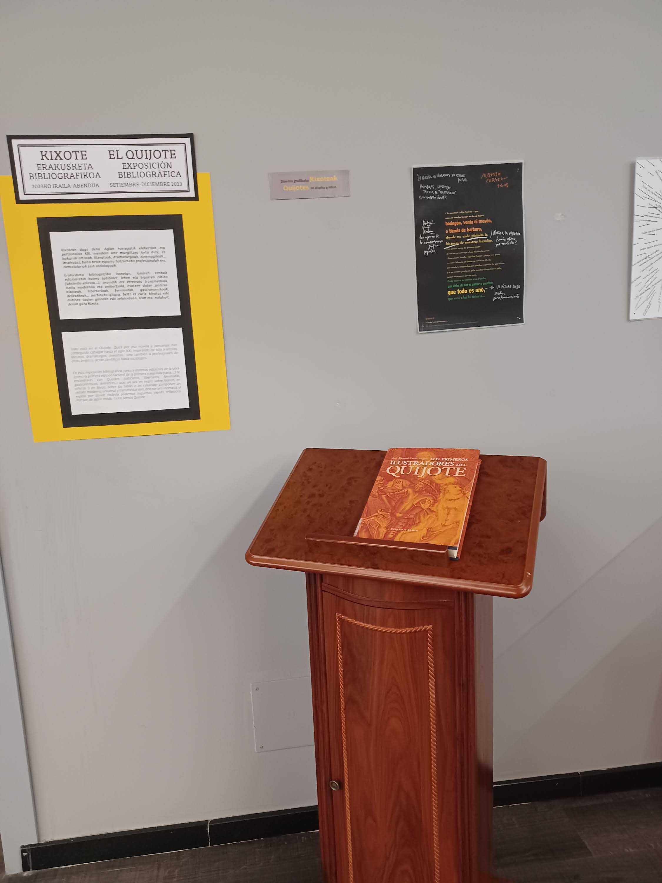 La exposición bibliográfica sobre la figura de El Quijote expuesta en el Campus de Álava y elaborada por el personal de la biblioteca de Vitoria-Gasteiz, recala esta vez en el hall de Biblioteca del Campus de Bizkaia en Leioa.