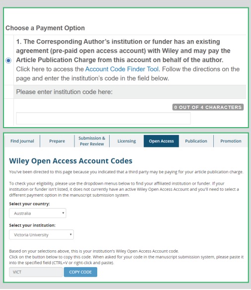 Hautatu 1. aukera: “The coresponding Author's institution has an existing agreement with Wiley...".