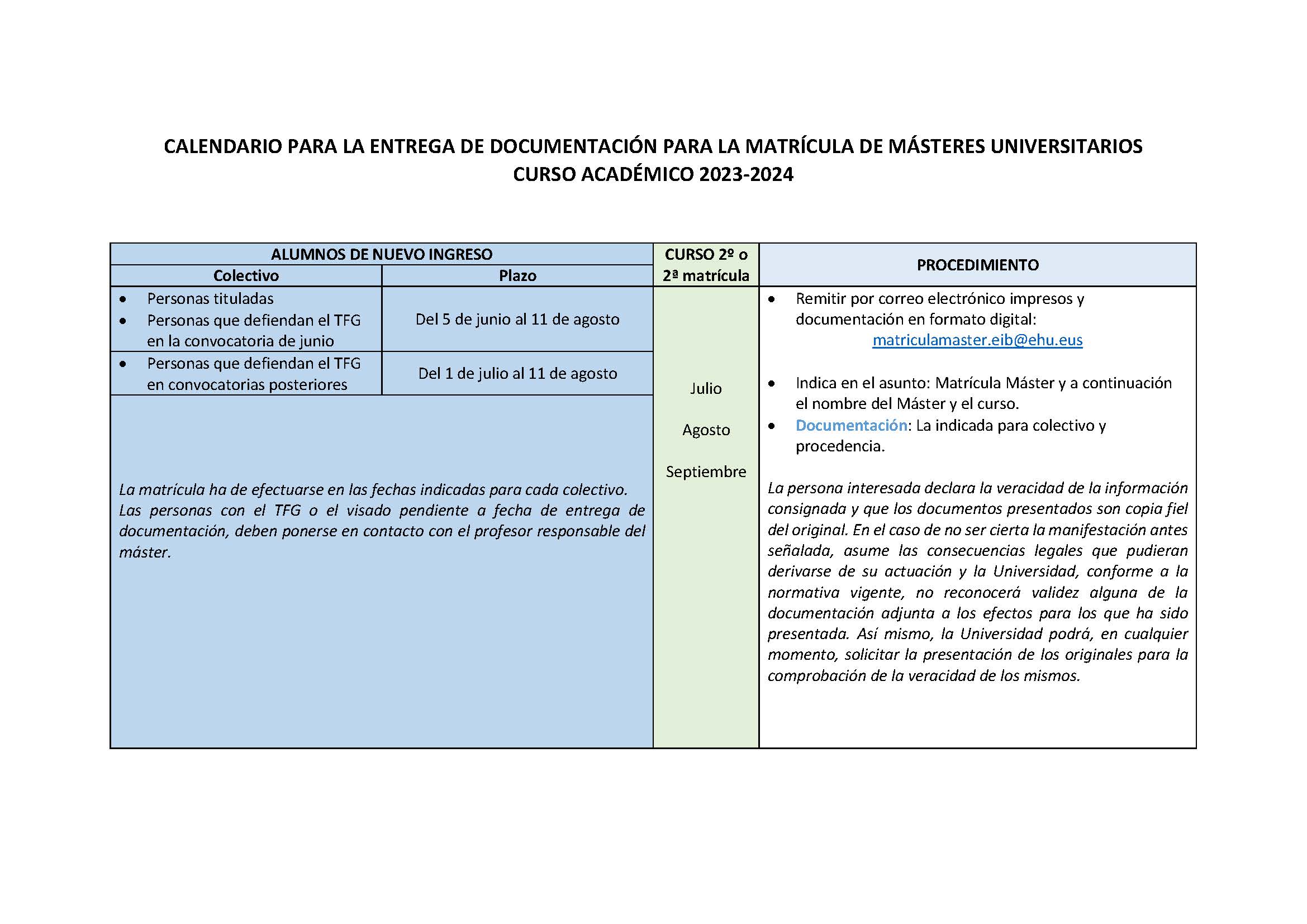 - Antes de enviar la documentación para la matrícula, consulta con el responsable de tu Máster si necesitas presentar el Plan Formativo.