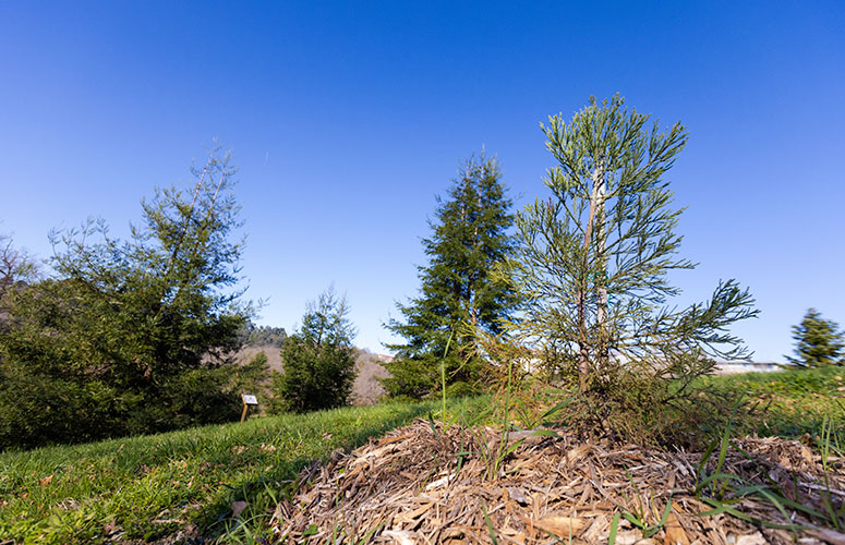 Eta, 2021aren amaieran landatu zenetik, UPV/EHUko Arboretumean jarraitzen du hazten, existitzen den beste sekuoia espezie bateko hiru alerekin batera, sekuoia palo alto edo redwood izenekoa (Sequoia sempervirens), duela hamar urte Arboretumera iritsi zirenak, lau kontinenteetako zuhaitzen bildumaren zati gisa. Altuenak 10 metro ditu jada.