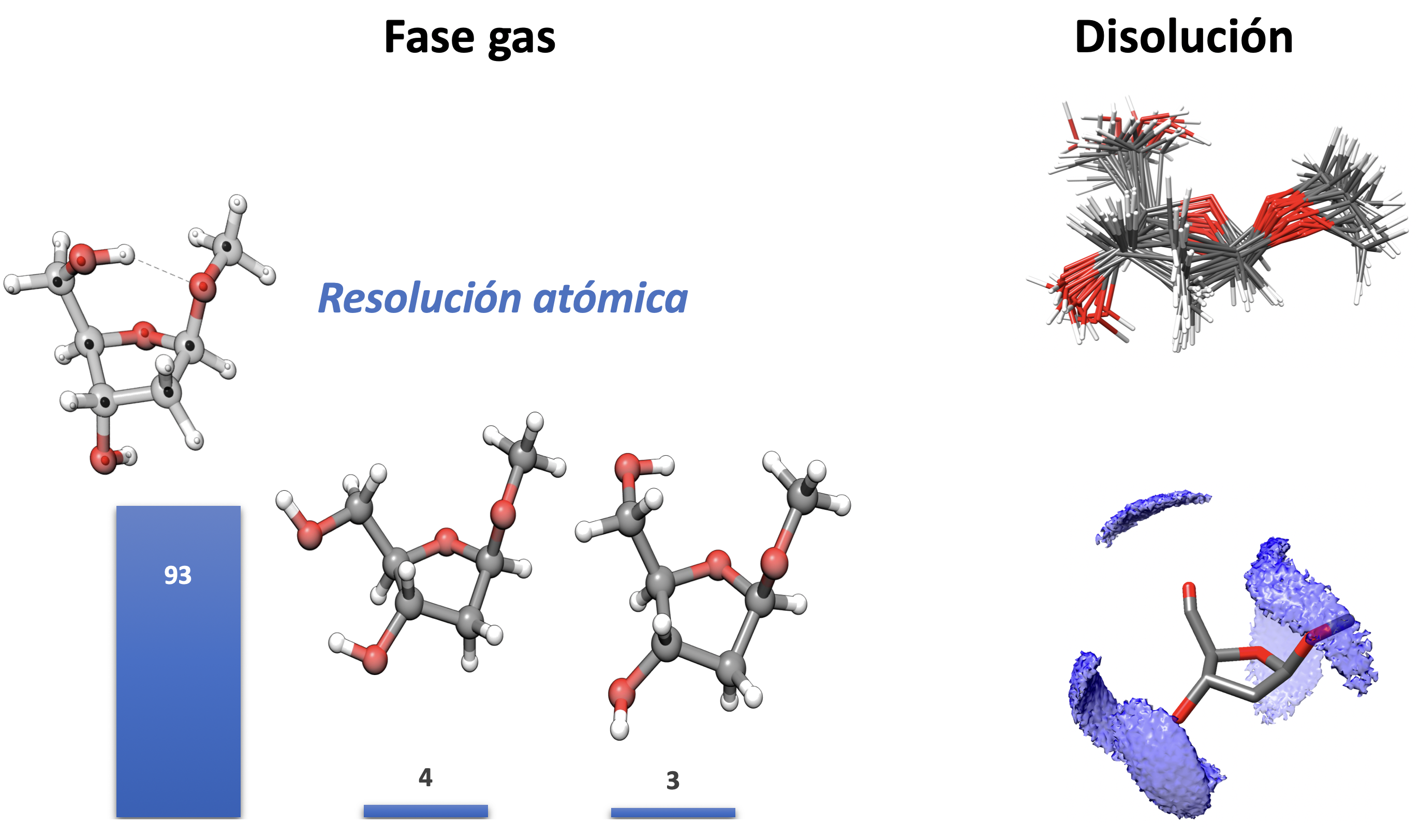 One of the main hurdles they had to overcome was the huge variability and flexibility between the various forms or conformations that may be adopted by 2-deoxyriboside molecules. The atoms that form these sugar molecules can be organised by forming five-membered or six-membered rings. “In nature, biological forms display five-membered rings, but in the experiments when the sugar is completely isolated and removed from any solvent and without it interacting with the remaining elements that make up the DNA and determine its configuration, the most stable form of sugars that we were achieving were six-member rings,” explained Cocinero.