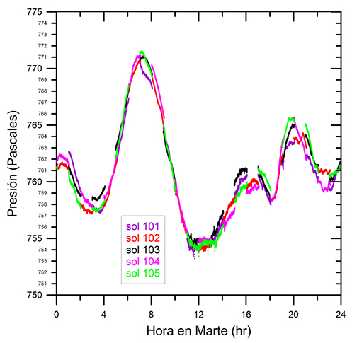 Pressure sensors, on the other hand, show in detail the seasonal change of the tenuous Martian atmosphere produced by the melting and freezing of atmospheric carbon dioxide at the polar caps, as well as by a complex, variable daily cycle, modulated by thermal tides in the atmosphere. “The pressure and temperature of the Mars atmosphere oscillate with periods of the Martian solar day (somewhat longer than the Earth's, it averages at 24 hrs 39.5 min) and with their submultiples, following the daily cycle of sunshine greatly influenced by the amount of dust and the presence of clouds in the atmosphere,” says Agustín Sánchez-Lavega, professor at the Faculty of Engineering - Bilbao (EIB) and co-researcher on the Mars 2020 mission.