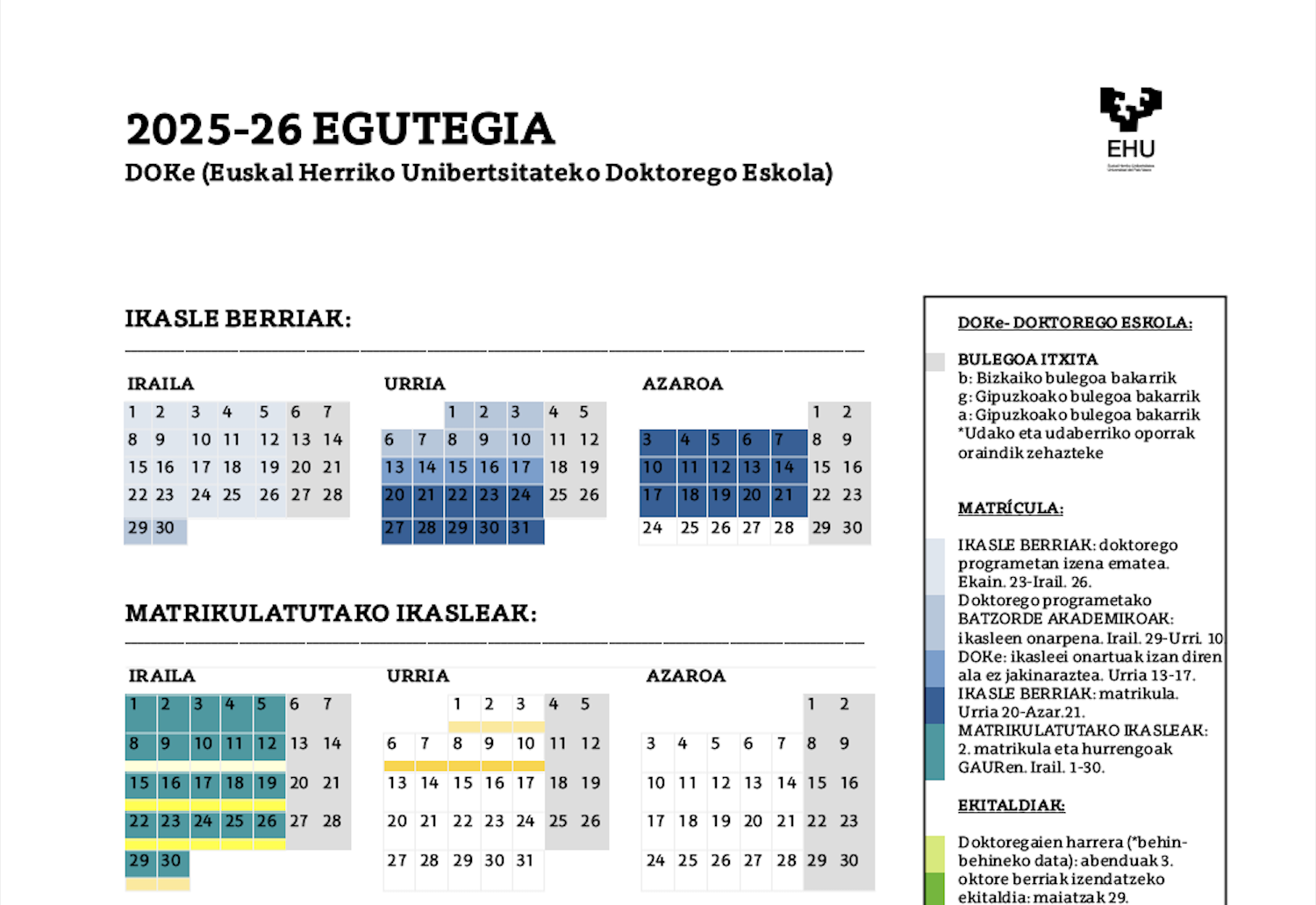 At the UPV/EHU Doctoral School (DOKe), you can choose from between 67 doctoral programmes covering all areas of knowledge to prepare your thesis. You can also broaden your training at other national and international institutions (for example, by means of co-supervision agreements with other universities) and obtain several special mentions (industrial, international…) in the same doctoral thesis.