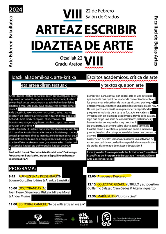 VIII Jornadas “ESCRIBIR DE ARTE: escritos académicos, crítica de arte y textos que son arte”