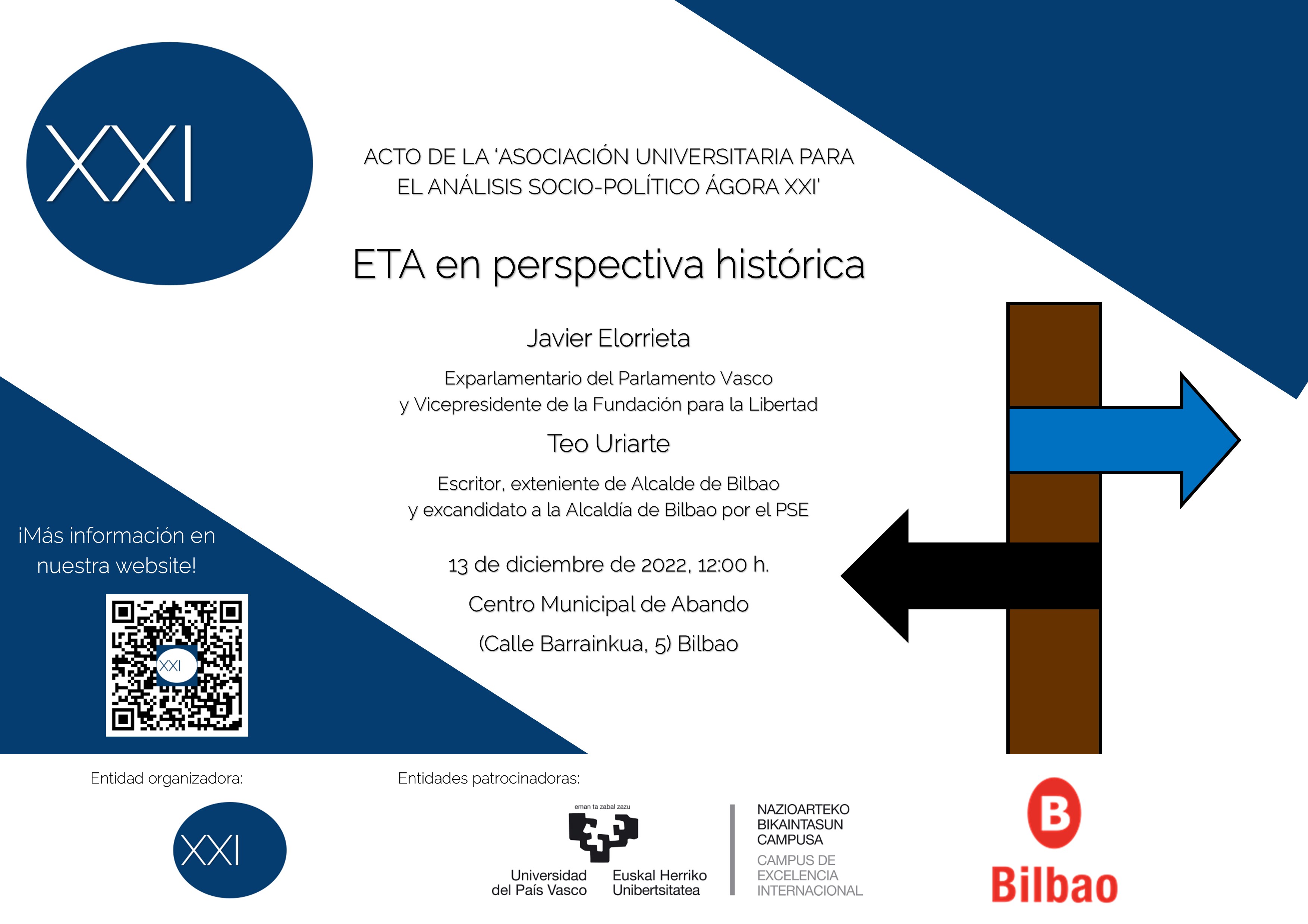 El martes 13 de diciembre, a las 12:00h., celebramos un acto: 'ETA en perspectiva histórica'.