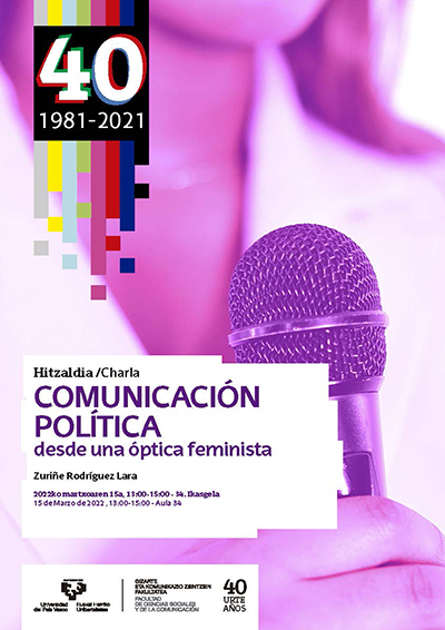 Chat Comunicación Política desde una óptica feminista Date 15/03/2022, 13:00 Hizlaria: Zuriñe Rodríguez Lara 34. IKASGELA Document (Opens New Window)cartel_comunicacion_politica.pdf (pdf ,278.97 Kb)