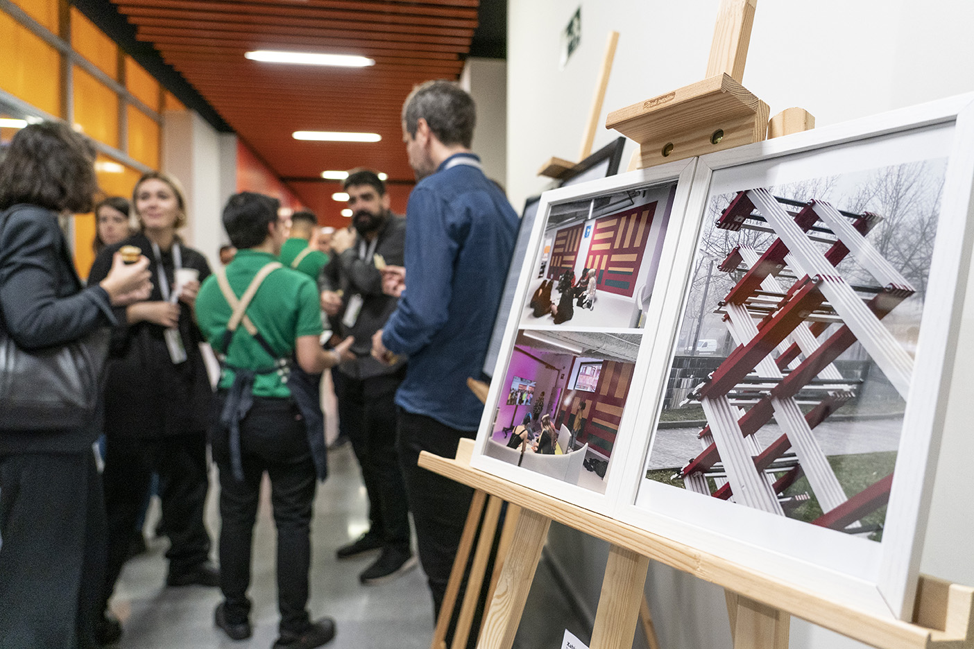 The combination of all these factors, inclination, incomplete cubes, subdivisions, connection of two super-cubes, and structural transparency, provides a dynamic experience to the viewer. As we walk around the structure, we perceive a series of contrasting perspectives. We see structures composed of rhombuses, triangles, diamonds, hexagons, squares or rectangles.