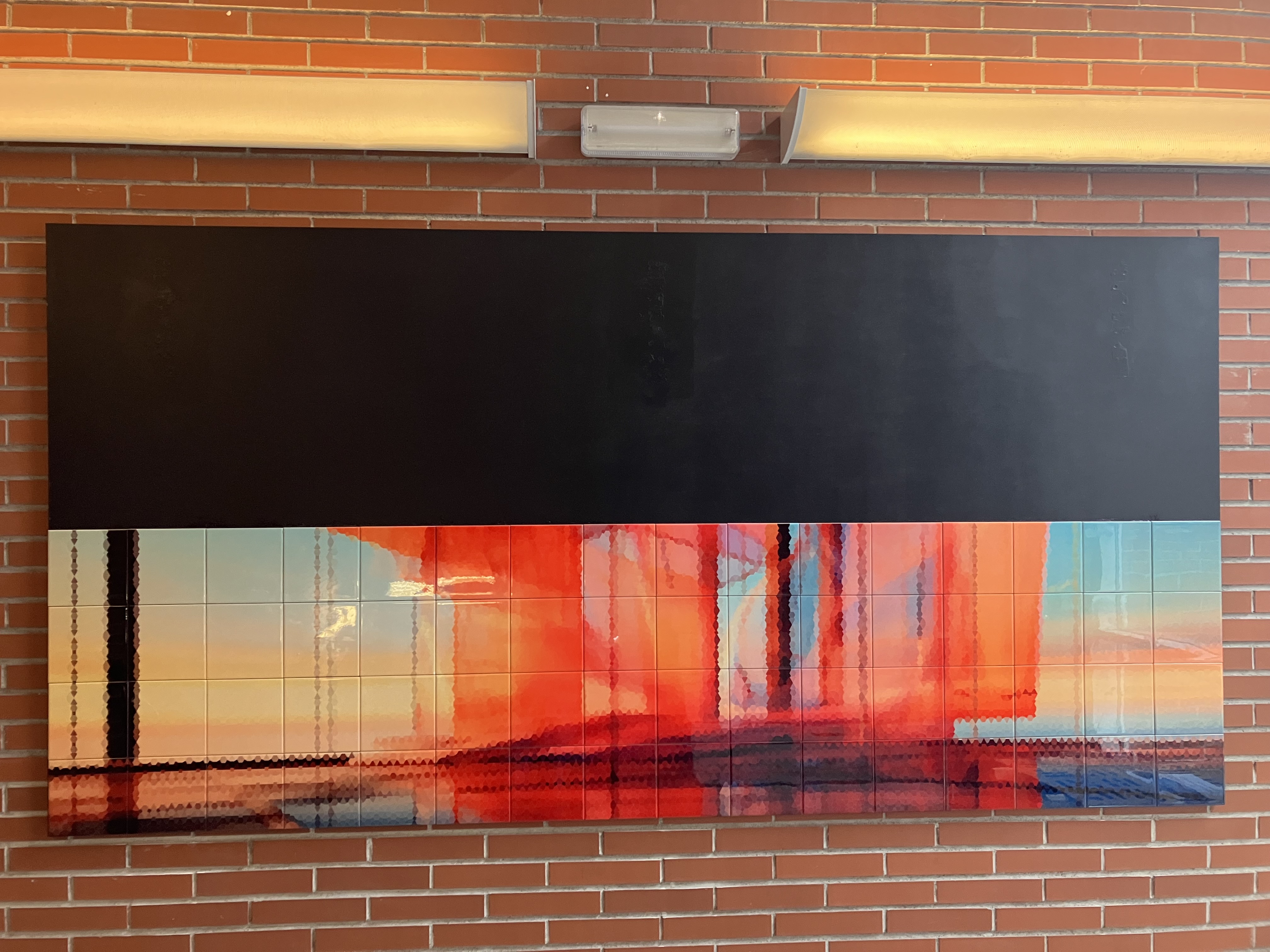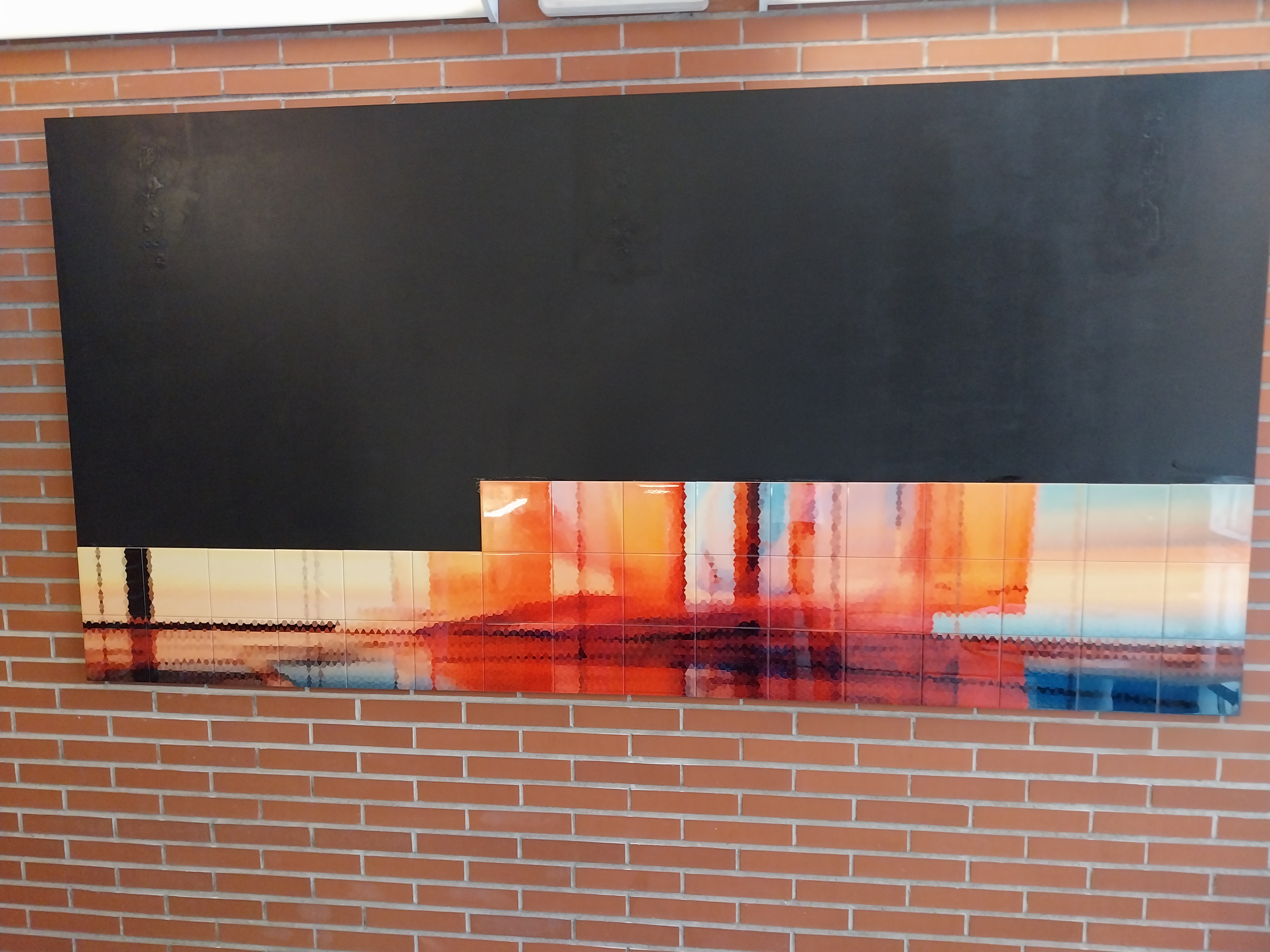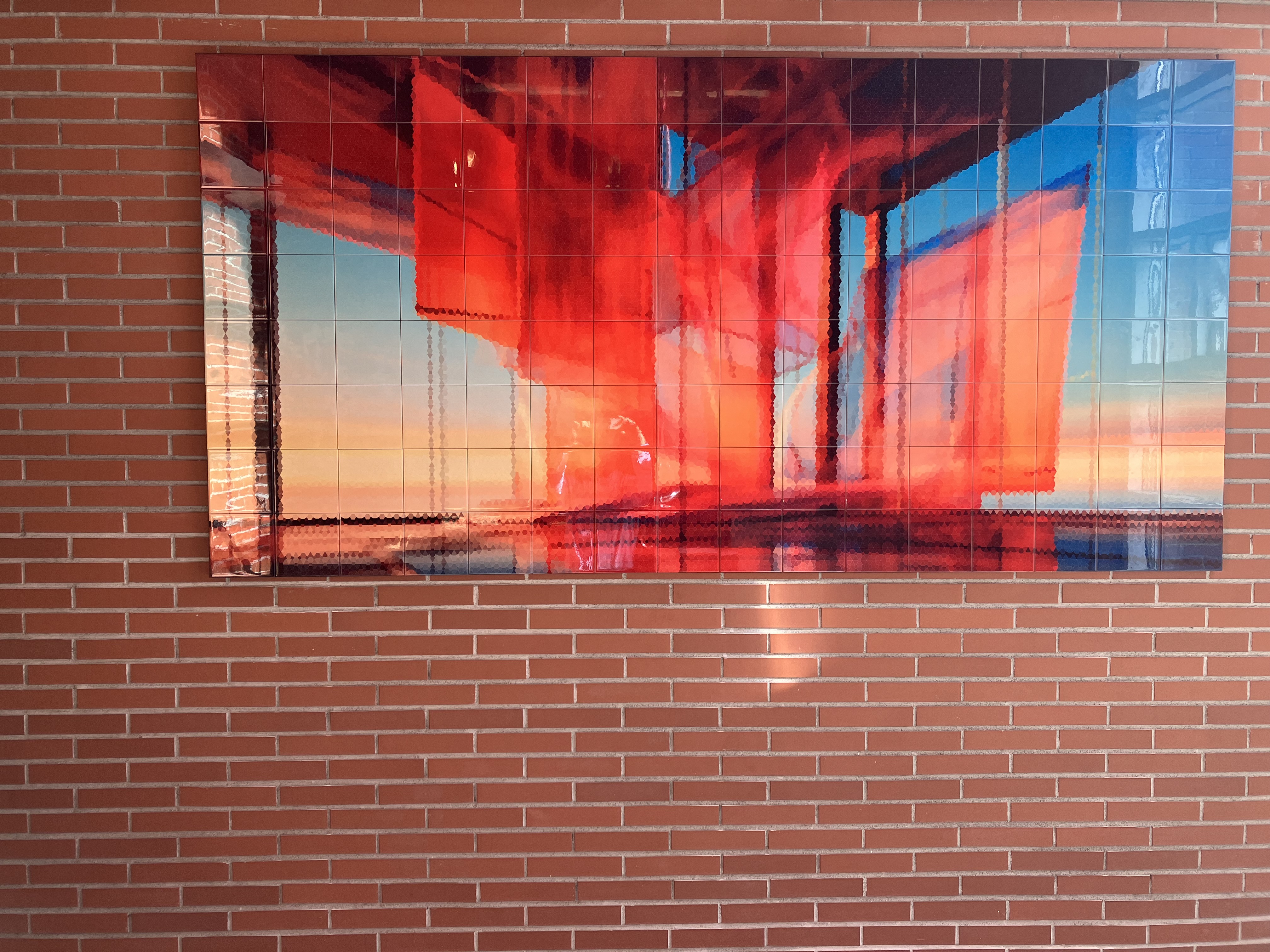 "Ceramic Drawing 2023.Taipei" is a mosaic created with the sublimation technique. It is an exploration of the human visual system and its most basic elements, visual cognitive primitives: how we perceive colors. From the colors perceived by the primitives, the mind structures this information in a hierarchical way and we are able to recognize superior elements, an image of the world around us. This mental process is fed by perceived colors, but uses many other forms of information from our memory. This combination of colors and hierarchical organization of colors is what we call visual experience. In this work, as in Ceramic Drawing 2023.Calais, the language of the work specifies the colors that the visual system will perceive: each polygon of the work contains a unique solid color. On the one hand, the regular geometric structure of each tile takes its inspiration from the tradition of Islamic art. On the other hand, this language of Islamic art with solid geometric colors establishes a representational objective of Roman ceramic art. The objective is to represent the world around us. The four elements studied in this work of art are: transparency through non-transparent polygons, light sources and their dissemination in space, the depth of three-dimensional space in a two-dimensional mosaic, and the representation of shapes of the nature through polygons.