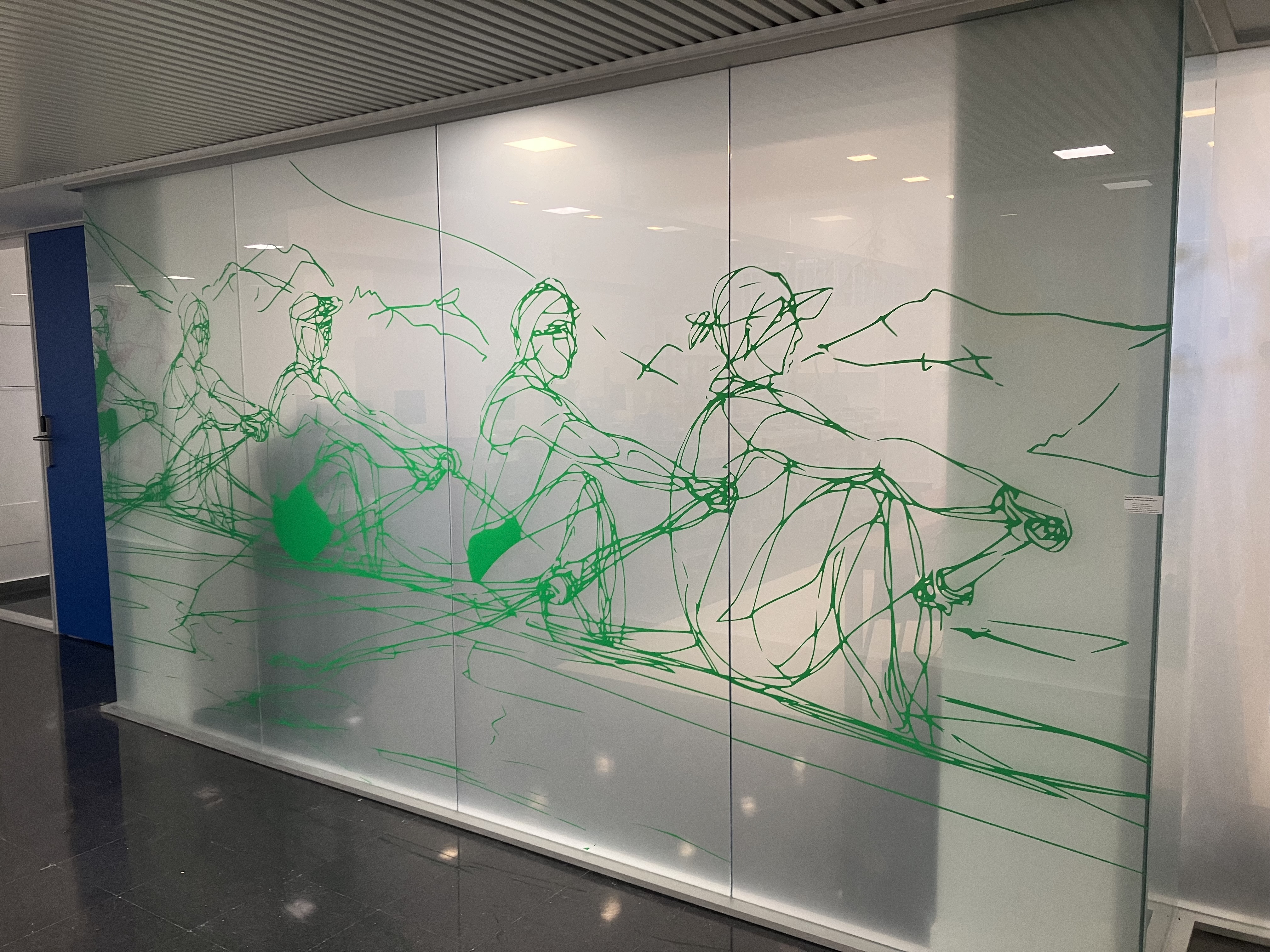 A special piece called “Motion with Meaning” has been installed in a secondary entrance to the MLC. It consists of four glass panels depicting sailboats propelled by the wind. Symbolically, the wind—although invisible—directs and sustains the sail, evoking the MLC's character as a space where movement becomes intention, and intention becomes knowledge. Although located in a less-traveled entrance, this work amplifies the visual narrative, reminding us that any access point can also be a starting point for new ideas.