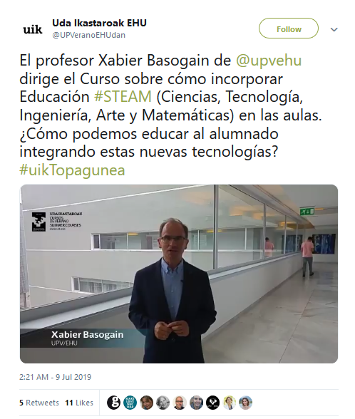 1.- Course: Integrating STEAM Education in the Schools of Euskadi