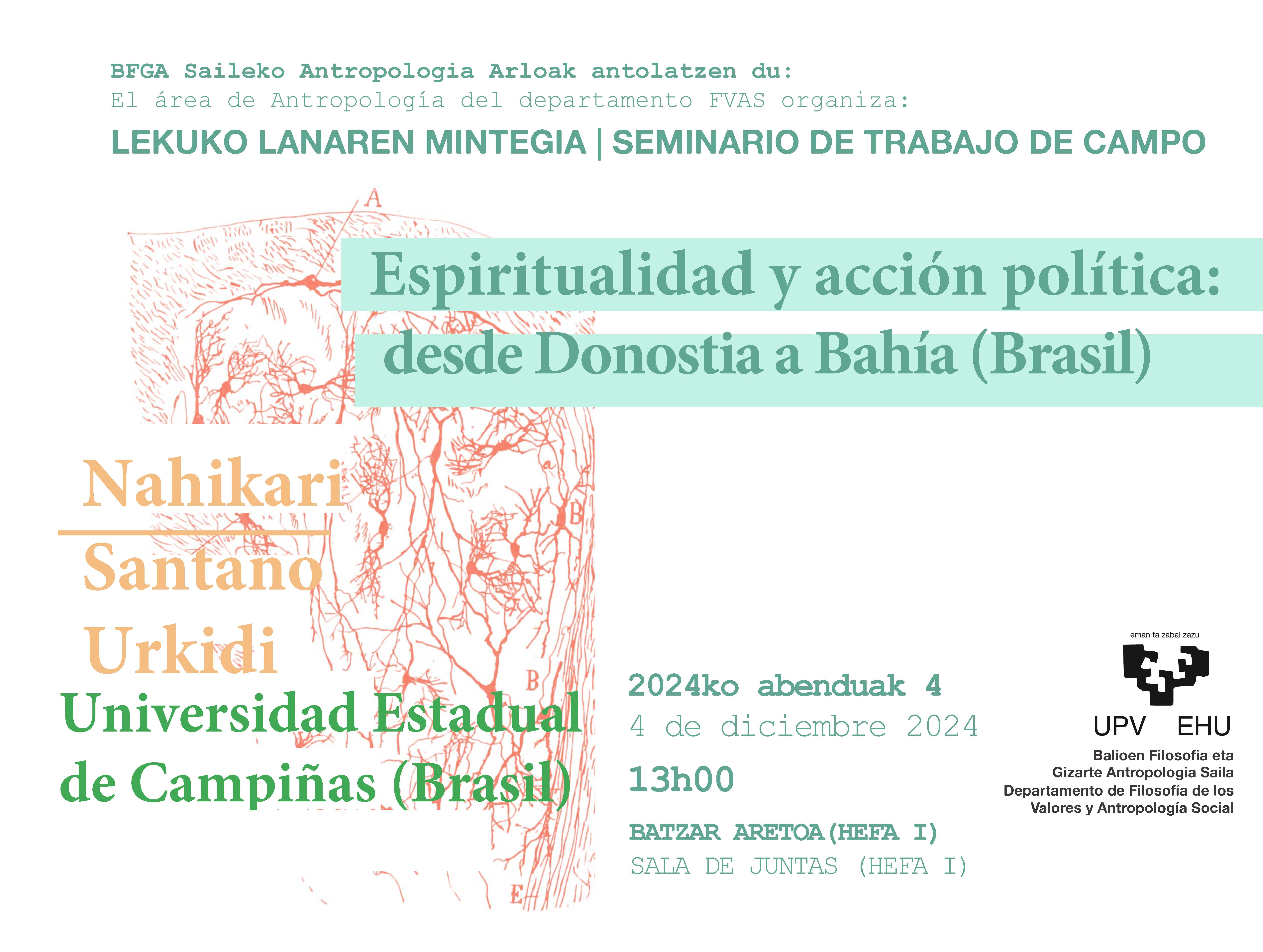 Antropologiaren Lekuko Lanaren Mintegia. Nahikari Santano Urkidi: Espiritualidad y acción política: desde Donostia a Bahía (Brasil)