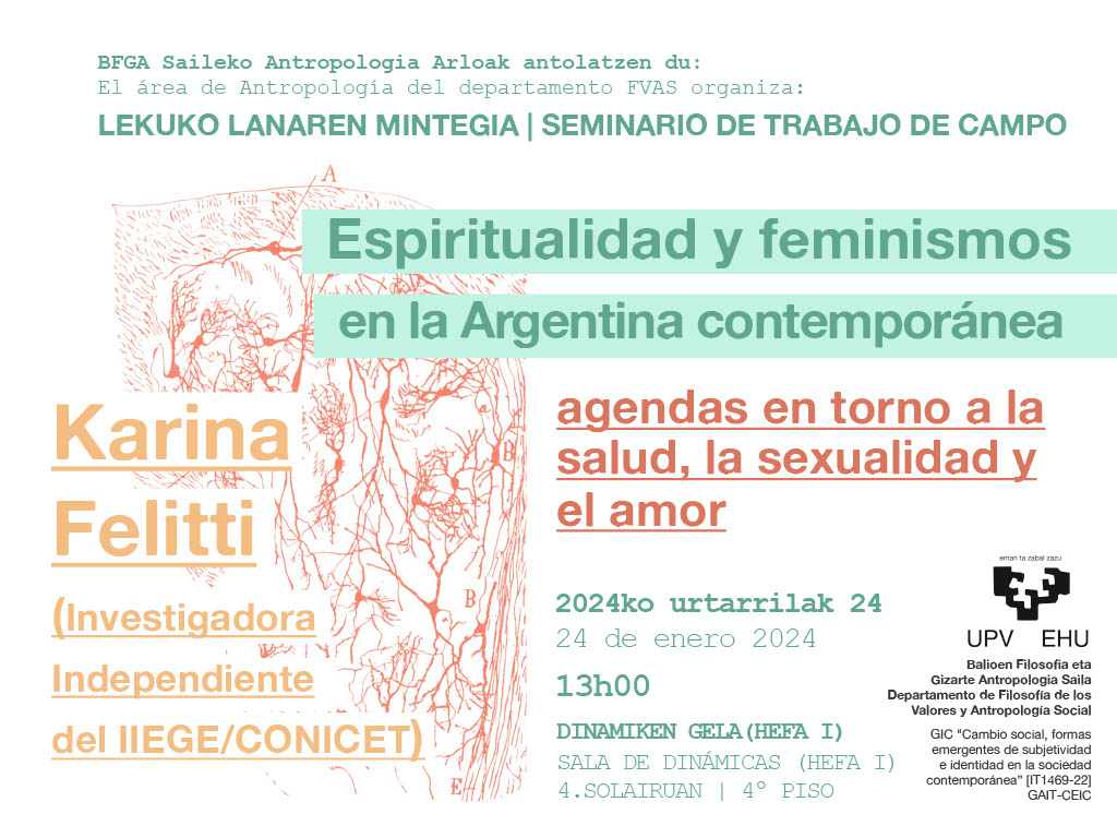 Antropologiaren lekuko lanaren mintegia. Karina Felitti: Espiritualidad y feminismos en la Argentina contemporánea.
