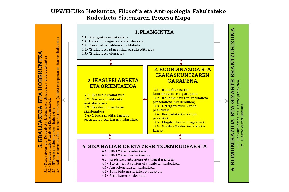 Kalitatea bermatzeko barne sistema (KBBS) (Opens New Window)Kalitatea Bermatzeko Barne Sistemaren Eskuliburua (KBBS) (pdf ,4,00 Mb) (Opens New Window)Prozesuen Mapa (jpg ,180,57 Kb) (Opens New Window) Kalitate batzordea (Opens New Window) Fakultateko Audit ziurtagiriak (Opens New Window) Kalitatearen Barne Bermeko Sistemak, AUDIT (UPV/EHU)