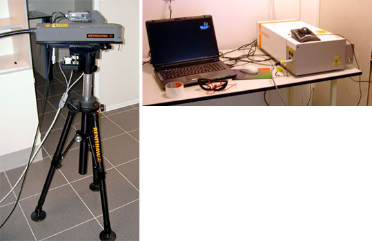 Renishaw RA100 system is coupled to a microprobe and implements a 785 nm diode laser and a Peltier cooled CCD detector. The nominal power laser is 150 mW at the source and neutral filters allow working at 1% (5mW at source and 1 mW at the sample), 10% (50 mW at source and 10 mW at the sample) and 100% (150 mW at the source and 30 mW at the sample) of total power. The microprobe allows focusing the laser around 10-200 μm depending on the used objective (20x or 50x). A video camera helps in the focusing. The spectral resolution is around 2 cm-1. Spectra are acquired with Renishaw Wire 3.2 software.