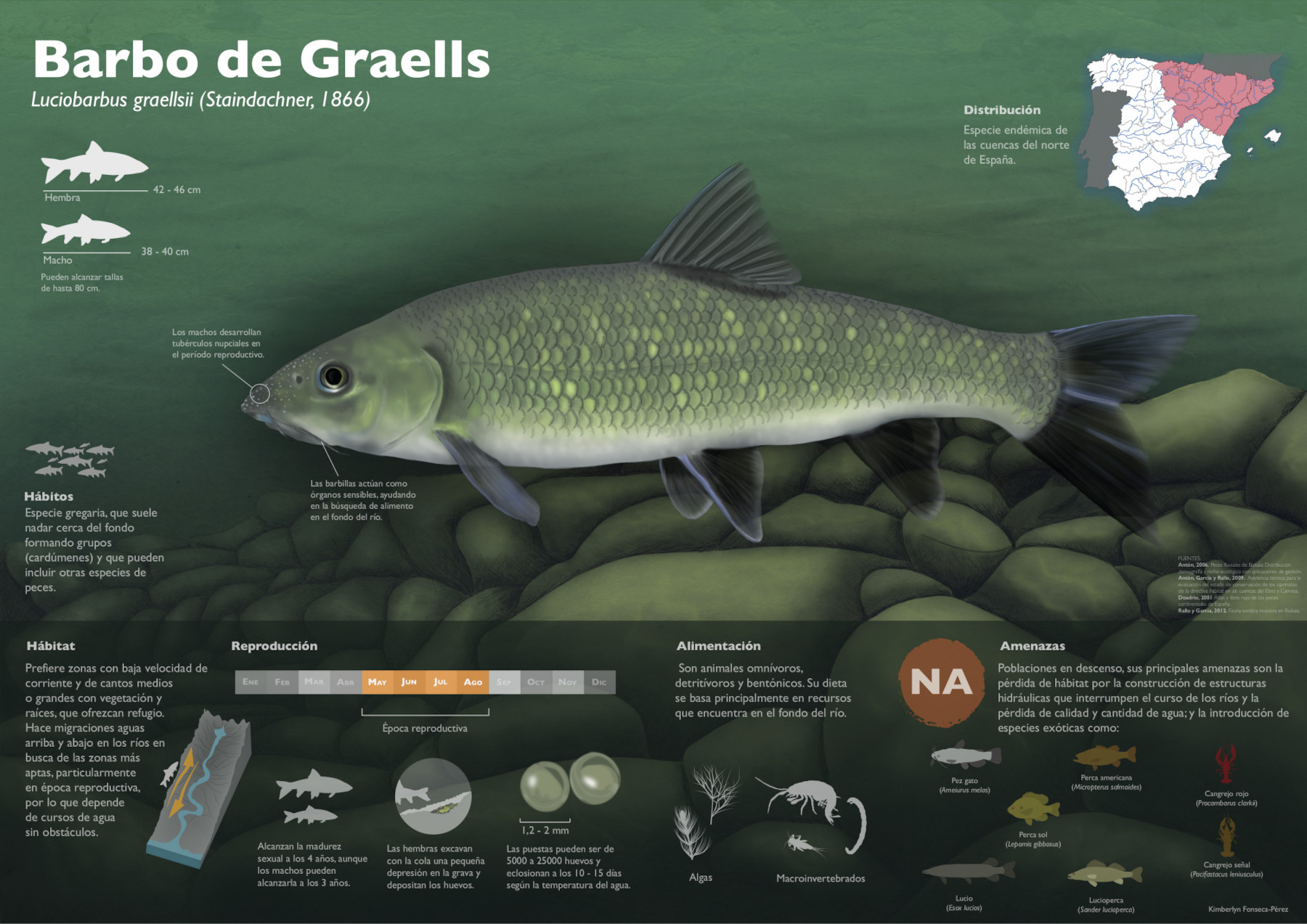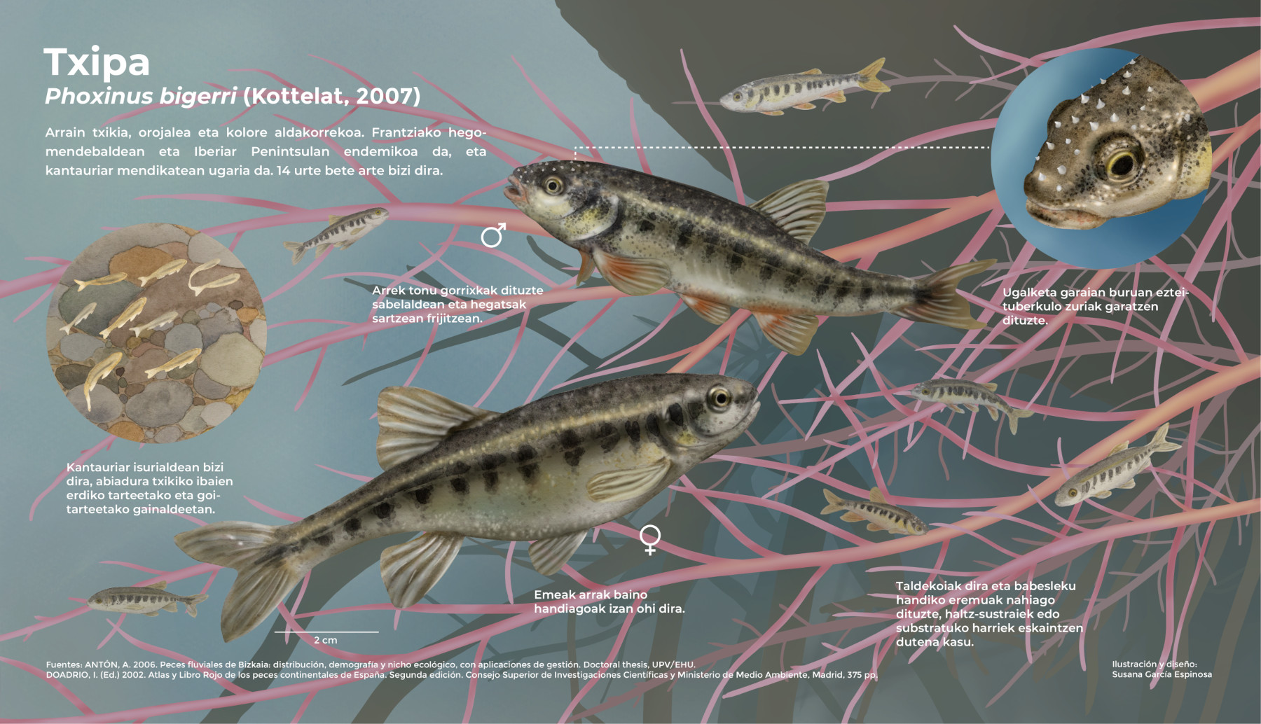 En los últimos dos cursos se han realizado además ilustraciones e infografías de peces de río, tanto autóctonos como exóticos, bajo la supervisión de varios profesores/as del postgrado y colaboradores, expertos en aspectos biológicos, artísticos y divulgativos.
