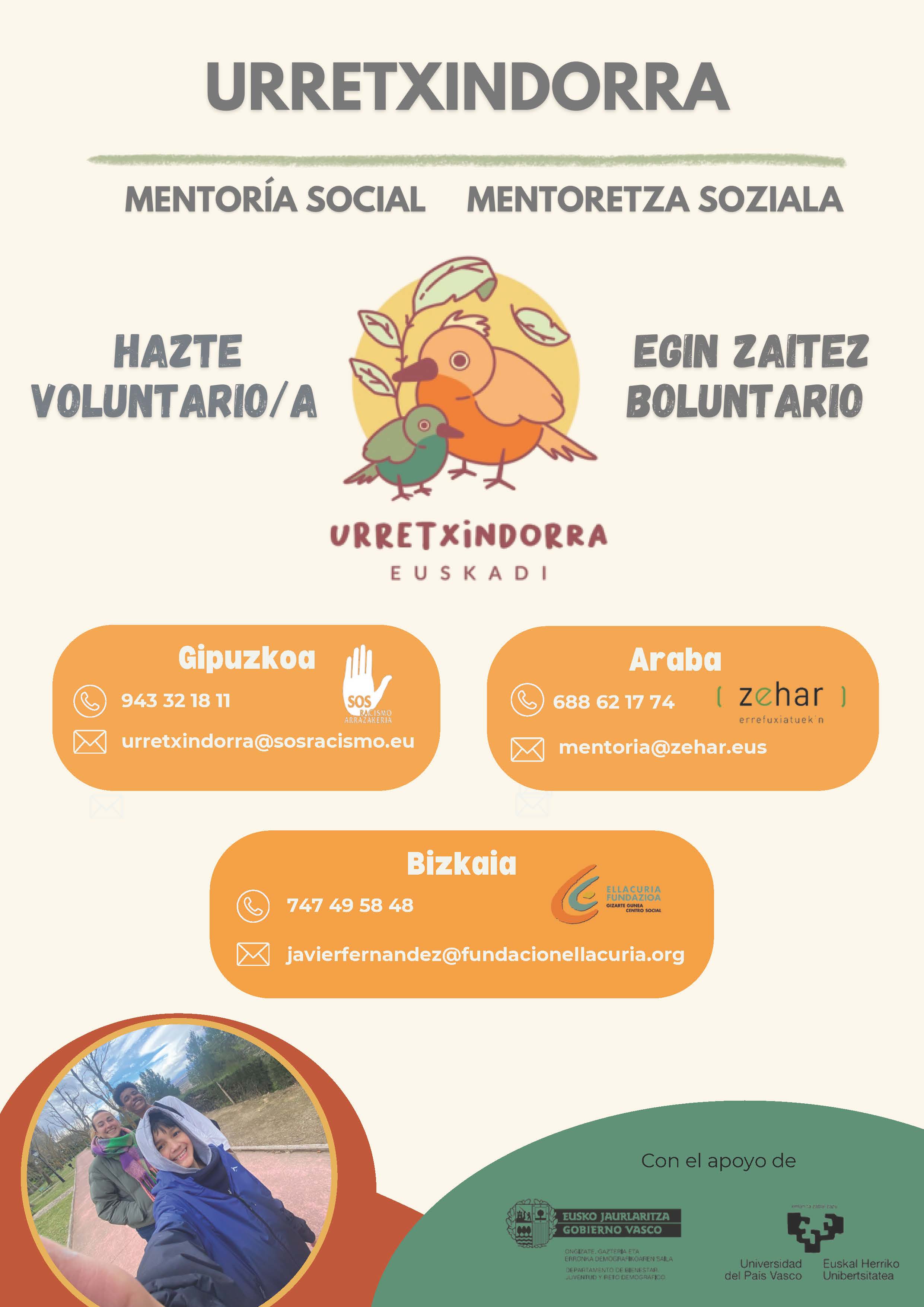 Urretxindorra gizarte-mentoretza programa bat da, eta jatorri migratzaileko haurren eta ikasleen arteko harremana sustatzen du. Helburua ongizate pertsonala, emozionala eta soziala erraztea da, haur horien autoestimua sustatzeari, trebetasun pertsonalak eta harremanak garatzeari, esperientzia berrien bizipenari eta bizi diren espazio berrien ezagutzari esker.